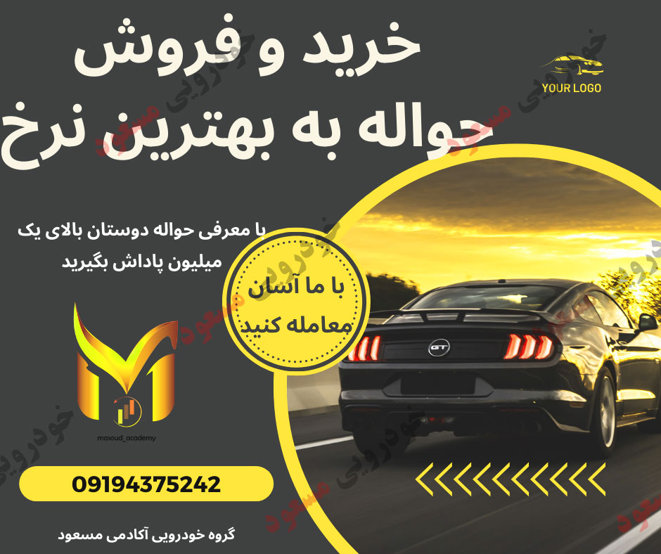گروه خودرویی مسعود خریدار حواله شما از سراسر کشور به قیمت بالا است همچنین این مجموعه در رابطه با ثبت نام و نحوه معامله مشاوره رایگان دارد که میتوانید به راحتی با شماره گیری و تماس ۰۹۱۹۴۳۷۵۲۴۲ از این امتیاز بهره مند شوید پاسخگوی ۲۴ساعته شما هستیم.